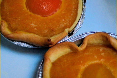 - 2 Mixer le tout avec l'œuf et la Maïzena. Découper la pâte brisée en trois cercles selon la taille des moules à tartelettes.