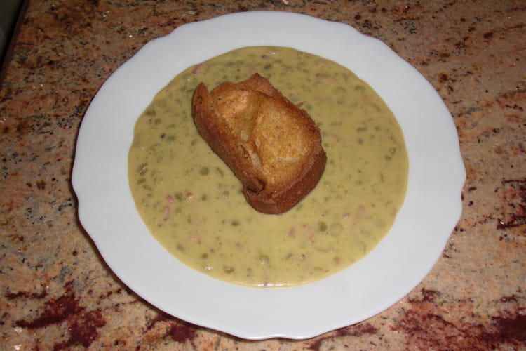 - 4 Faites dorer les lardons dans une petite poêle. Lorsque les pois cassés sont cuits, retirez le bouquet garni, puis passez le contenu au mixeur pour réduire le tout en purée.