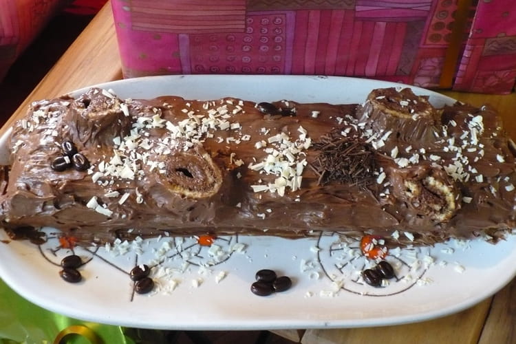 Pour finirDérouler l'ensemble et disposer les 2/3 de la crème sur le biscuit. Enrouler le tout à nouveau et recouvrir du restant de crème. Placer une journée ou une nuit au réfrigérateur.