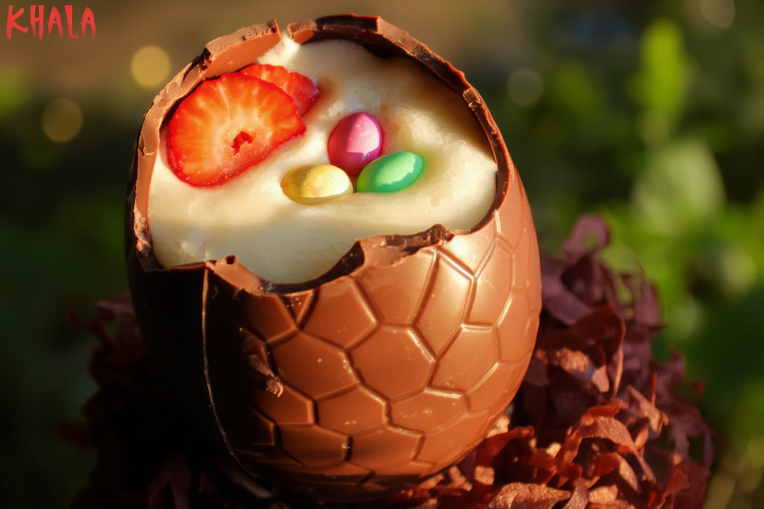 Pour finirLaissez prendre au frais quelques heures, puis décorez avec une fraise, des petits œufs en sucre ou le haut des œufs en chocolat râpé. Servez très frais.