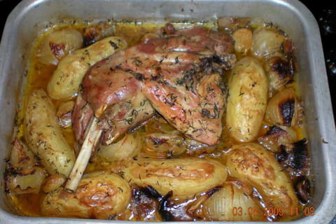 Première cuissonMettre au four à 220°C (thermostat 7) pendant 20 minutes. Retourner la cuisse sur l'autre face et remettre au four à 220°C pendant 20 minutes de plus, puis arroser d'un verre de vin blanc sec.