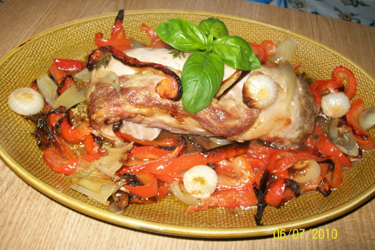 Mettre dans un plat au four la longe de porc, les échalotes et l'huile d'olive. - 3 Enfourner 15 minutes à 200°C (thermostat 7). Ensuite, diminuer la température du four à 180°C (thermostat 6) et poursuivre la cuisson pendant 35 minutes.