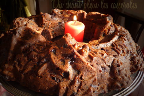 - 3 Choisissez un moule rond de petit diamètre et à bords très hauts (ici, un moule américain kitchissime en forme de couronne de Noël, qui fera tout son effet une fois que le gâteau aura reçu son glaçage... Graissez le moule ou chemisez-le de papier sulfurisé. Versez l'appareil à cake et faites cuire 2h. Au bout d'une heure, couvrez le dessus du cake pour éviter que la surface du gâteau ne se dessèche.