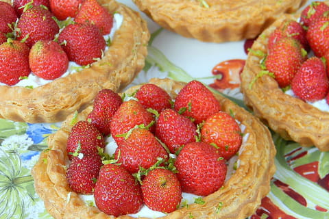 Mangez vos fraises avec une crème de mascarpone au citron vert sur une pâte feuilletée bien dorée et croustillante, cela change de la chantilly ou de la crème pâtissière.
