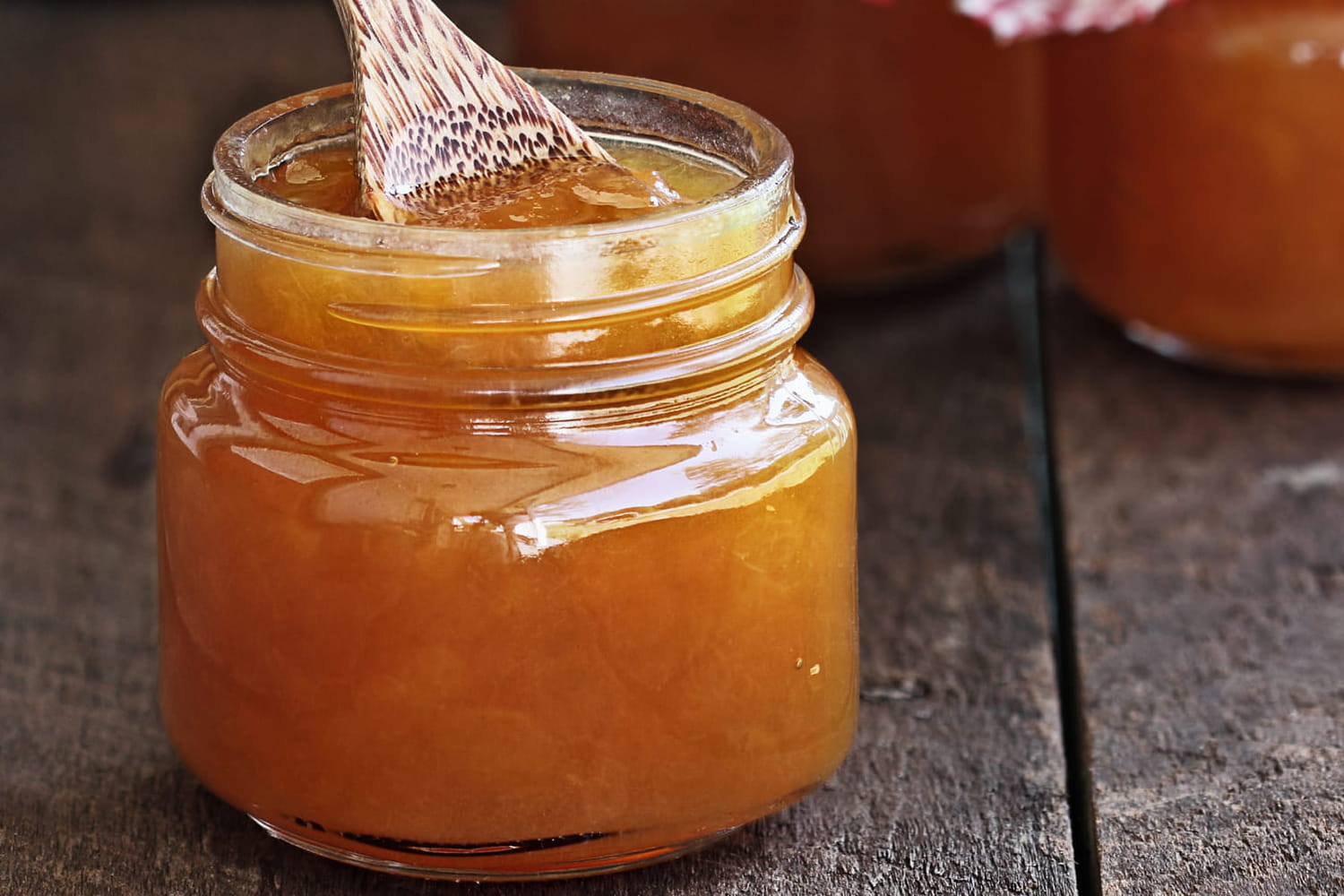 Une confiture bien mise en pots et conservée à l'abri de la lumière peut se garder plusieurs mois dans un placard.