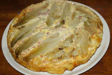 - 5 Faire revenir les endives dans un peu de beurre ajouter du miel pour qu’elle caramélises, réservez. Faire revenir les lardons ajouter le mélange yaourt œufs, y mettre les endives comme sur une tarte, ajouter les pommes épluchées et coupées en petit dés (je ne les fais pas cuire pour les garder fermes) ajouter un peu de comté et recouvrir de la pâte feuilletée (pour plus de couleur et de croustillant je badigeonne de jaune d’œuf la pâte)