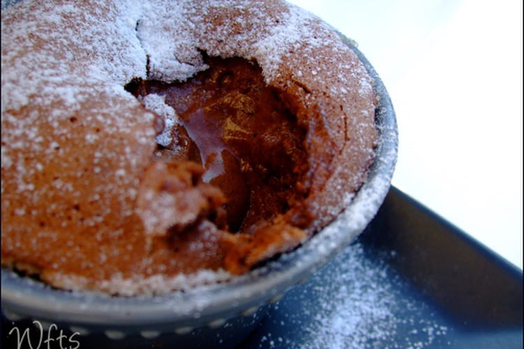 Pour finirPréchauffer le four th 7, 210°c. Enfourner pour 10 minutes. Les “soufflés” vont légèrement gonfler, mais ne doivent pas craqueler, le cœur sera coulant et les bords pris. Saupoudrer de sucre glace et servir sans attendre.