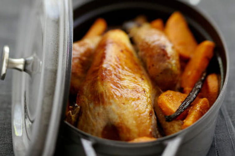 Découvrez cette recette de chapon de pintade en cocotte aux patates douces vanillées, cuite lentement pour une chair tendre et juteuse. La cuisson en cocotte sublime la pintade, accompagnée de patates douces qui apportent une touche d'originalité au plat. Proposée par le Comité Interprofessionnel de la Pintade, cette recette associe une viande fondante à des patates doucement caramélisées pour un bel équilibre sucré-salé. Lire la suite