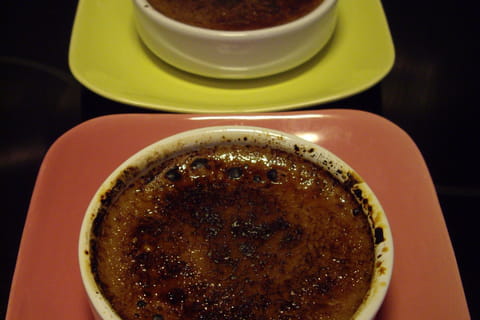 Laisser reposer ou écumer à l’aide d’une cuillère à soupe la mousse qui reste en surface afin que la crème soit lisse après cuisson. Verser dans vos récipients à crème brûlée. Faire cuire 1h dans un four à 100°c en chaleur tournante (voire 1h30 selon les récipients et four ; pour vérifier la cuisson, secouer légèrement la crème elle doit être "prise" aux 2/3, elle finit de durcir en refroidissant). Laissez refroidir puis mettre au réfrigérateur. Réduire en poudre la cassonade avec un petit robot mixeur ce qui facilitera la caramélisation (ou prendre de la vergeoise). Avant de servir, ajouter la cassonade puis caraméliser au chalumeau. Servir aussitôt.