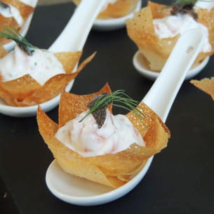 Pour un apéritif qui dépote, optez pour ces bouchées de brick à la ricotta, truite et truffes. Vos invités seront bluffés !